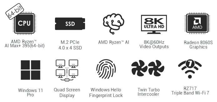 Der ER939-AI wird vom AMD Ryzen™ AI Max+ 395 Prozessor (16 Kerne/32 Threads, max. 5,1 GHz) angetrieben und bietet unübertroffene Leistung für anspruchsvolle Aufgaben.
