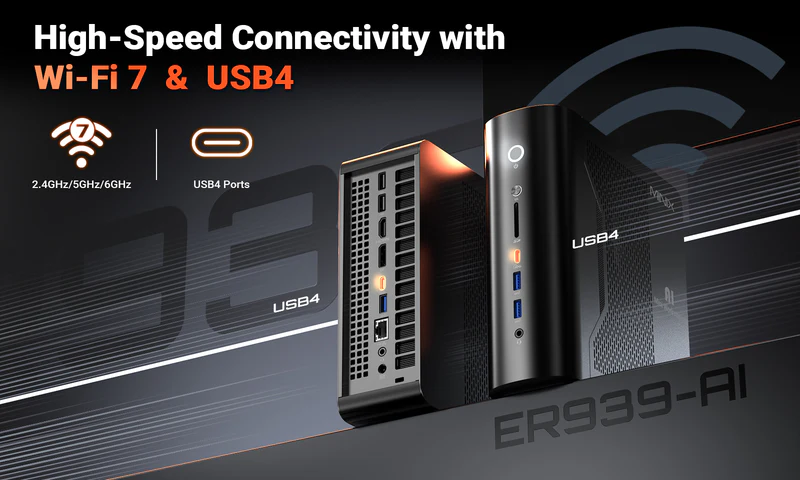 Ausgestattet mit 8 x 16 GB LPDDR5-8000-MHz RAM und einer 2 TB NVMe-SSD (erweiterbar auf 8 TB) gewährleistet das ER939-AI schnellen Datenzugriff und großzügigen Speicherplatz.