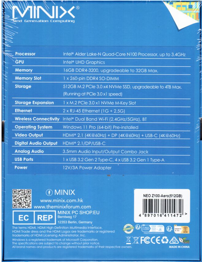 | Lieferumfang: • MINIX NEO Z100-Aero mit 16GB RAM und 512GB SSD | ![]() |