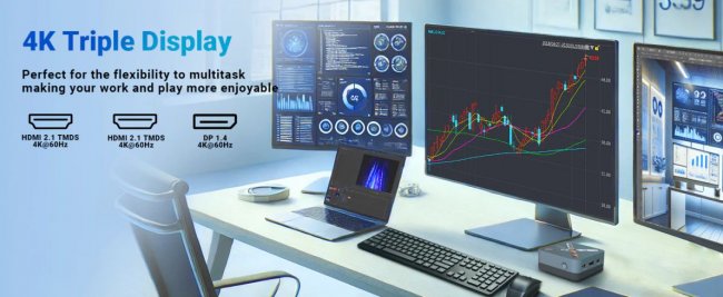 Videoausgang: 2 x HDMI® 2.1 TMDS (4K@60Hz) + DP 1.4 (4K@60Hz)