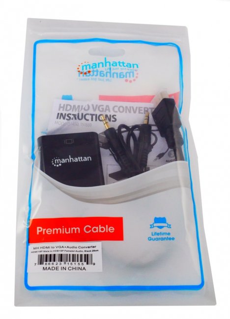 Der Manhattan HDMI auf VGA Konverter konvertiert Videosignale von Geräten mit HDMI-Ausgang (z.B. DVD-/ Blu-ray-Player, Spielekonsole, PC, Notebook, TV-Box) in ein analoges Signal, um dieses an Geräten mit analogem VGA-Eingang (z.B. Monitor, TV, Beamer) wiederzugeben.