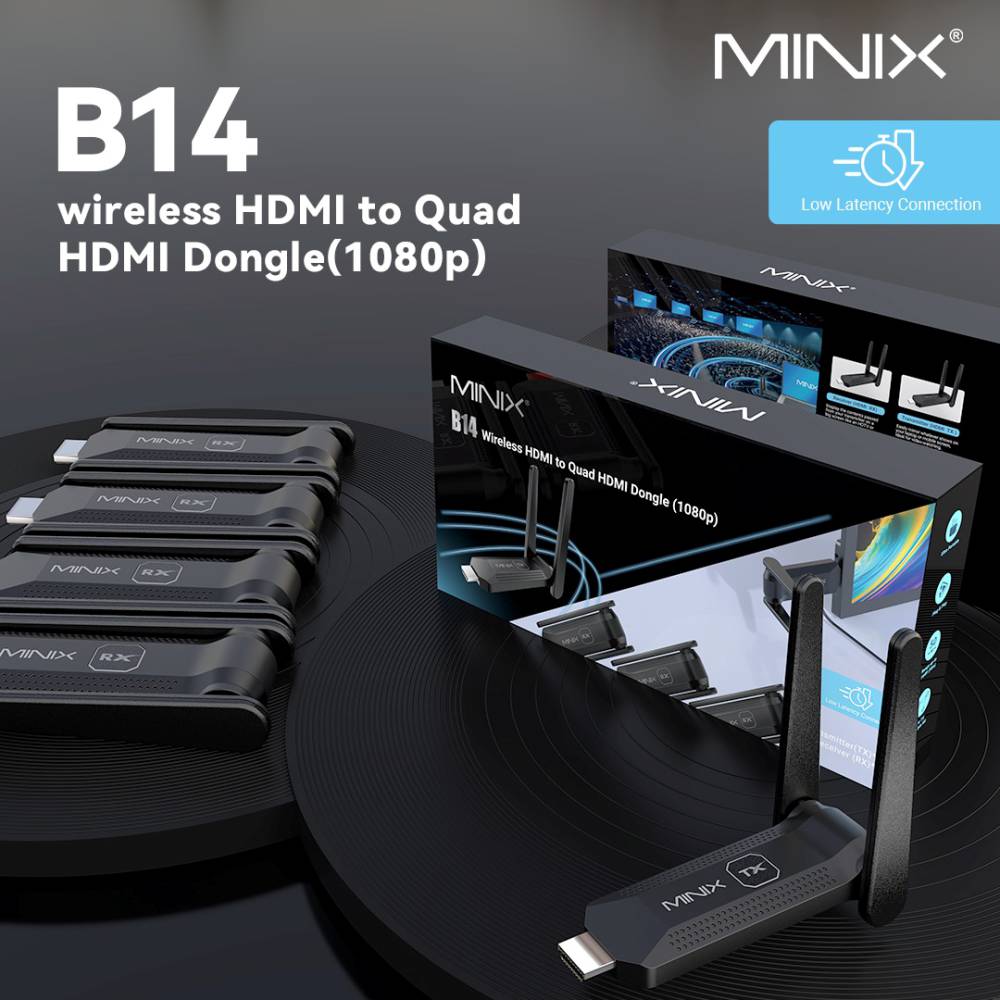 Der MINIX B14 ist ein innovativer drahtloser HDMI zu Quad HDMI Dongle,
